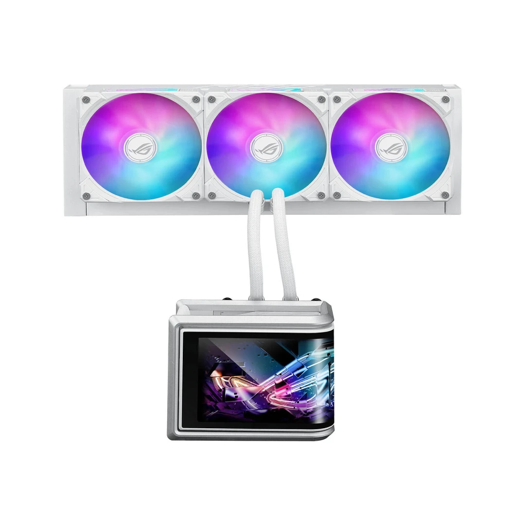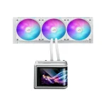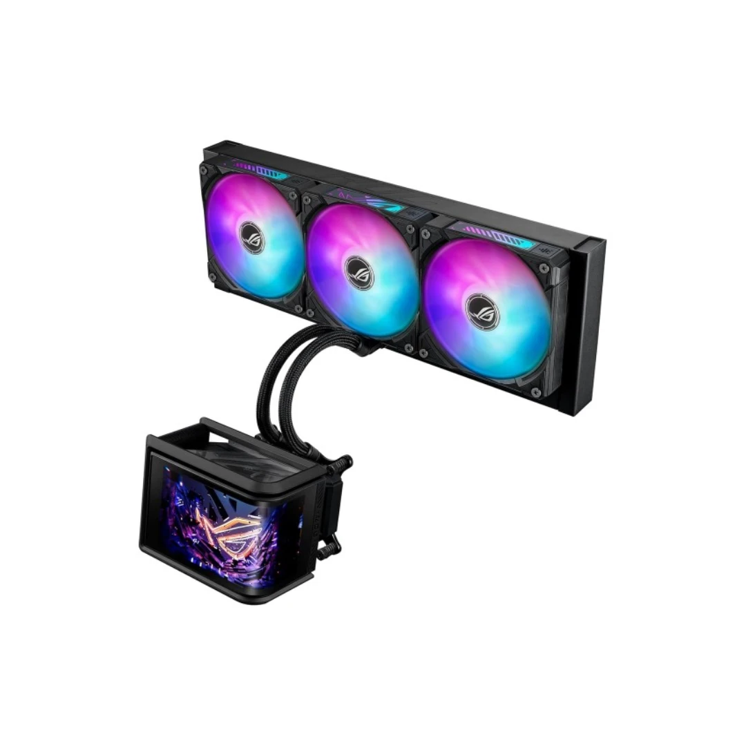 خنککننده پردازنده ایسوس ROG RYUO IV SLC 360 ARGB یک محصول رده بالا از سری مادربردهای ایسوس است که با هدف ارائه عملکرد حرارتی عالی و ظاهری چشمگیر طراحی شده است . برجستهترین ویژگی این محصول، صفحه نمایش ۶.۶۷ اینچی AMOLED خمیده با وضوح 2K است که قابلیت جابجایی داشته و میتواند ویدئوهای سه بعدی یا اطلاعات سیستمی را نمایش دهد . این کولر از لولههای کوتاهتر به طول ۲۰۰ میلیمتر بهره میبرد که به زیبایی و نظم بیشتر داخل کیس کمک میکند . فنهای ۱۲۰ میلیمتری ARGB آن به صورت زنجیرهای و از پیش نصب شده عرضه میشوند و دارای نورپردازی در بخش جلویی و کناری هستند . پمپ با کارایی بالا قادر است پردازندههای مدرن و پرمصرف اینتل و AMD را حتی تحت بار سنگین خنک نگه دارد . نرمافزار اختصاصی ASUS InfoHub نیز کنترل کامل بر روی صفحه نمایش و نورپردازی را در اختیار کاربر قرار میدهد .