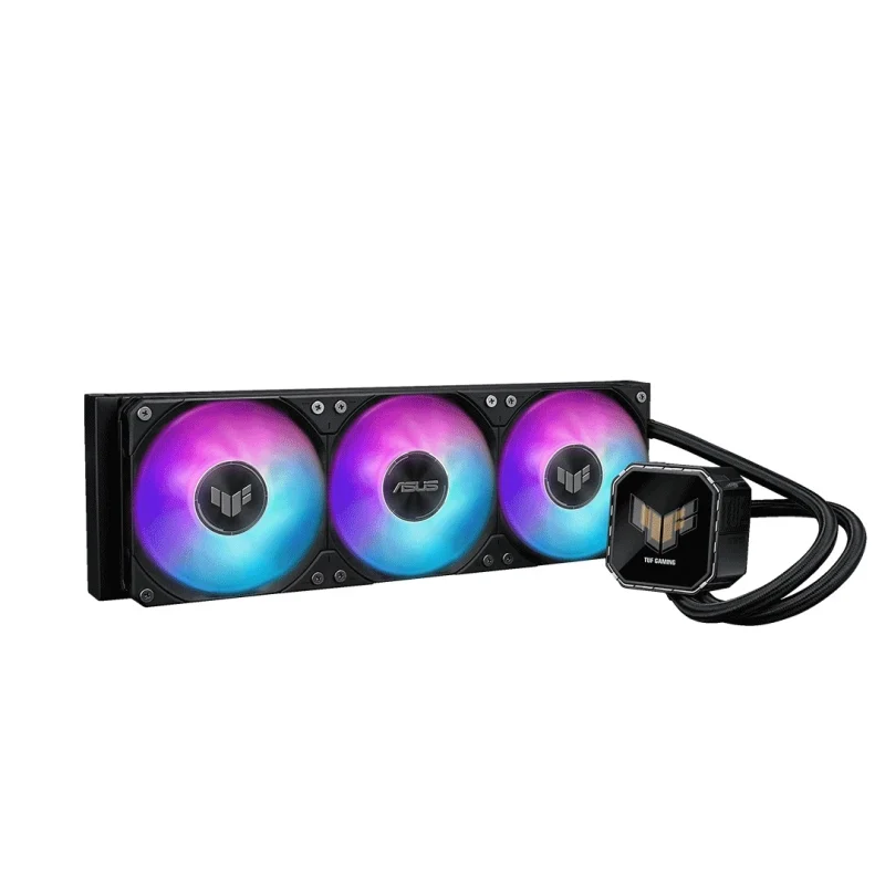 خنک کننده ASUS TUF Gaming LC III 360 ARGB Black LCD یک سیستم آب خنک کننده (AIO) تمامعیار برای پردازنده است که با طراحی ۳۶۰ میلیمتری رادیاتور و سه فن ۱۲۰ میلیمتری بهطور مؤثر گرمای CPU را دفع میکند و مناسب سیستمهای گیمینگ و قدرتمند میباشد. این خنککننده دارای پنل ۲٫۸ اینچی IPS LCD روی بلوک پمپ است که علاوه بر نمایش وضعیت دما و اطلاعات سختافزاری، امکان پخش تصاویر و انیمیشنهای سفارشی را نیز فراهم میکند و به هماهنگی با نورپردازی ARGB و Aura Sync کمک میکند. بلوک آبی از پایه مسی با خمیر حرارتی از پیشنصبشده بهره میبرد و لولههای آن با روکش مقاوم ۴۰۰ میلیمتری انعطافپذیری بالا برای نصب در کیسهای بزرگ دارند. سه فن ARGB PWM با سرعت بالا جریان هوای قوی و فشار استاتیک مناسب ایجاد میکنند تا حرارت در رادیاتور بهخوبی پراکنده شود و نویز در حد قابلقبول باقی بماند. این محصول با پشتیبانی از سوکتهای رایج Intel و AMD سازگاری دارد و از نظر طراحی و عملکرد، ترکیبی از خنکسازی کارآمد و جلوه بصری جذاب را ارائه میدهد.