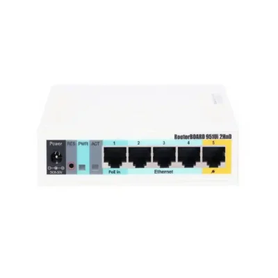 محصول RB951Ui-2HnD از تجهیزات میکروتیک دستگاه وایرلس با قابلیت Access Point  است که از نسل جدید پردازنده Atheros با قدرت بیشتر طراحی شده است. این  روتر اکسس پوینت 5 پورت اترنت و کارت وایرلس با توان خروجی 1000mW که از استاندارد 802.11b/g/n پشتیبانی می کند  . همچنین این دستگاه دارای یک پورت USB است .  سرعت پردازنده این دستگاه 600MHz و 128MB حافظه رم و یک خروجی PoE برروی پورت شماره 5 است که می توان دستگاه های دیگر را با استفاده از آن روشن کرد. حداکثر جریان بار برروی این پورت 500mA می باشد. محتویات این پکیج روتربرد 951Ui-2HnD با بدنه پلاستیکی و آداپتور می باشد.
