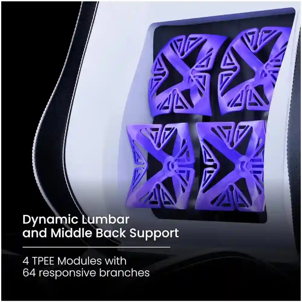 تکیهگاه ContourMax: این سیستم از یک لایه فوم مموری (Memory Foam) و چهار ماژول TPE با ۶۴ شاخه تشکیل شده که به طور هوشمندانه با انحنای طبیعی ستون فقرات شما تطبیق مییابد و از خستگی و درد در نشستنهای طولانی جلوگیری میکند .