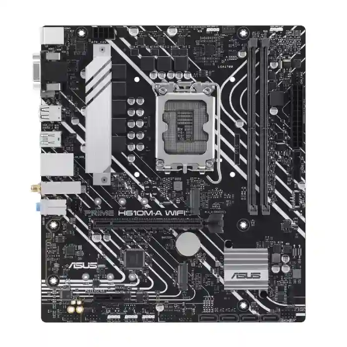 مادربرد ایسوس مدل PRIME H610M-A WIFI D5 یکی از مادربردهای اقتصادی و کاربردی ایسوس است که برای کاربران سیستم‌های کوچک، اداری، خانگی و گیمینگ سبک طراحی شده. این مادربرد Micro-ATX با چیپ‌ست Intel H610 و پشتیبانی از رم‌های DDR5 به همراه وای‌فای داخلی انتخابی بسیار مناسب برای اسمبل سیستم‌های مدرن با امکانات ضروری است.